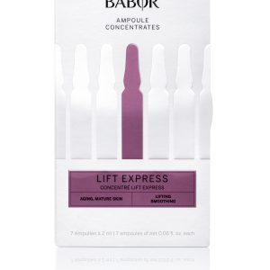 Έχοντας τη μορφή επτά αμπούλων μίας χρήσης, το Lift Express της BABOR έχει σχεδιαστεί για να δημιουργεί την ψευδαίσθηση του πιο σφριγηλού, ανανεωμένου δέρματος. Κάθε αμπούλα γεμάτη ορό είναι γεμάτη με ένα μείγμα ενεργών συστατικών, που λειτουργούν σε συνέργεια για να εξομαλύνουν την εμφάνιση των λεπτών γραμμών.