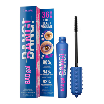 Η Benefit BADgal Bang! (συχνά αναφερόμενη ως η μάσκαρα που δίνει "bounce" και όγκο που αψηφά τη βαρύτητα) είναι ένα παγκόσμιο best-seller, σχεδιασμένο για να προσφέρει εκρηκτικό όγκο που διαρκεί έως και 36 ώρες. Η καινοτομία της έγκειται στην ανάλαφρη σύνθεσή της, η οποία επιτρέπει το "χτίσιμο" πολλαπλών στρώσεων χωρίς να βαραίνει τις βλεφαρίδες.Η απόχρωση Intense Black προσφέρει ένα βαθύ, δραματικό μαύρο αποτέλεσμα που κάνει το βλέμμα να φαίνεται αμέσως πιο έντονο και ξύπνιο.
