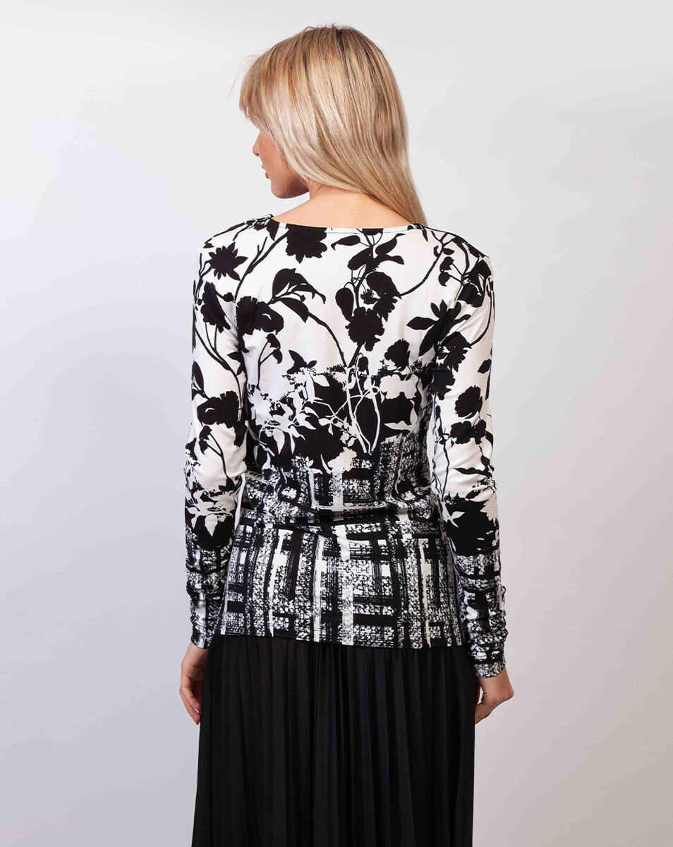 Μπλούζα – μακρύ μανίκι – εφαρμοστή στο σώμα – ντραπέ – πλύσιμο στους 30