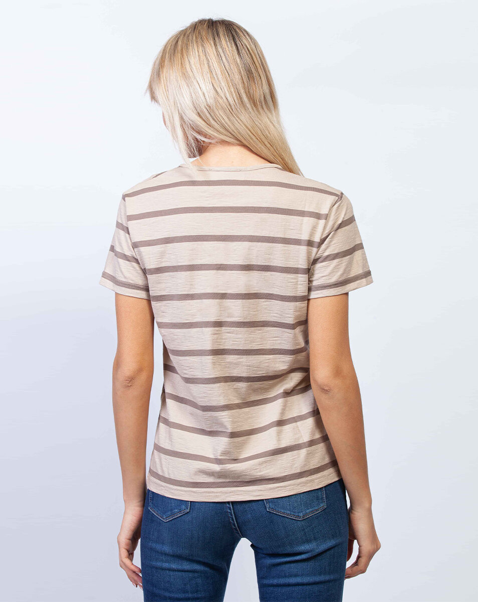 Μπλούζα – κοντό μανίκι – ριγέ – τσέπη στο στήθος και κέντημα – εφαρμοστή στο σώμα – πλύσιμο στους 30