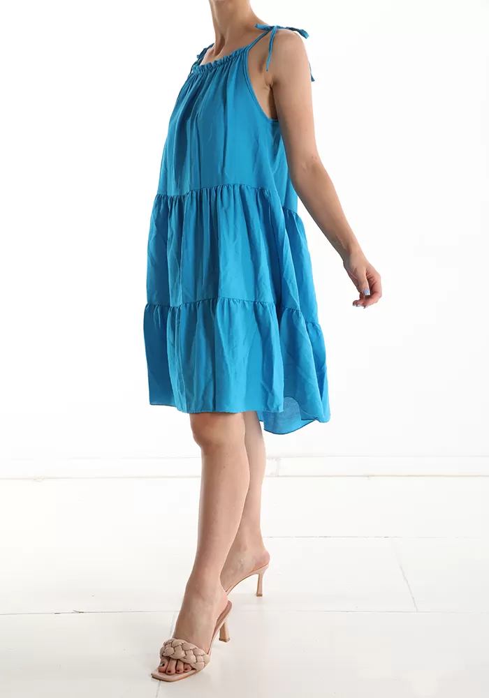 Φόρεμα μπλε κοντό με βολάν – one size – medium fit