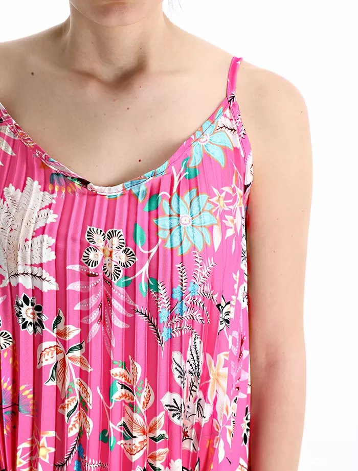 φόρεμα πλισέ με τιράντες σε φαρδιά γραμμή