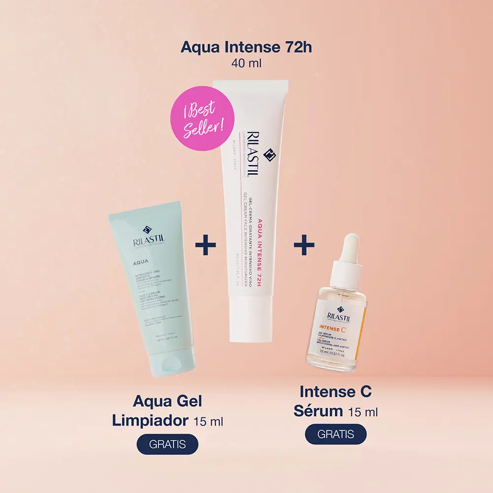 RILASTIL AQUA INTENSE 72H HYDRATION AND GLOW RITUAL 3 pc SET Facial cream gel 40ml + Facial cleanser 15ml + Facial serum gel 15ml