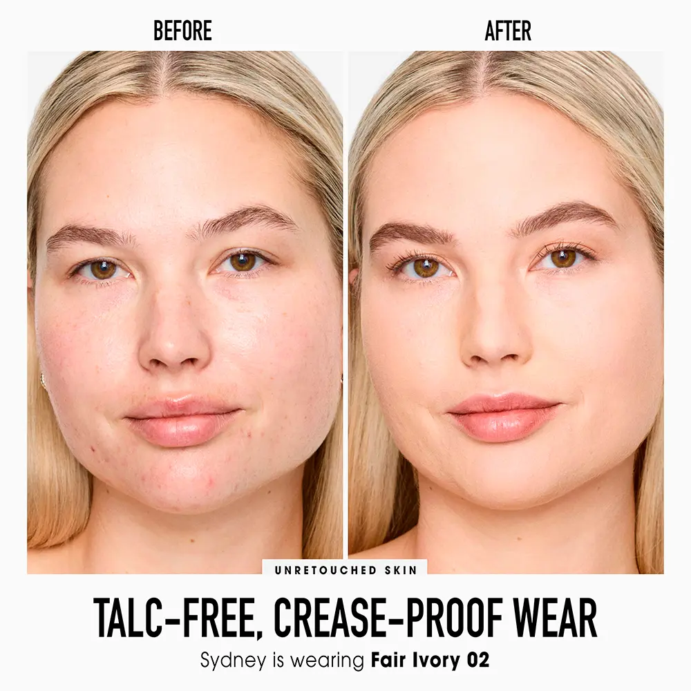 Το BARE MINERALS ORIGINAL Mineral Compact Foundation είναι ένα καινοτόμο foundation πλήρους κάλυψης σε συμπαγή μορφή, που προσφέρει φυσικό ματ φινίρισμα και αόρατη αίσθηση στην επιδερμίδα. Η σύνθεση βασίζεται σε 90% φυσικά συστατικά και είναι εμπλουτισμένη με μεταλλικά στοιχεία, καλύπτοντας άψογα τις ατέλειες, ενώ ταυτόχρονα προστατεύει από τον ήλιο χάρη στον δείκτη SPF 15. Η απόχρωση 02 Fair Ivory είναι ιδανική για πολύ ανοιχτόχρωμες επιδερμίδες με ψυχρούς (ροζ/μπλε) υποτόνους, εξασφαλίζοντας ένα makeup μακράς διάρκειας με φυσικό αποτέλεσμα στο μακιγιάζ.