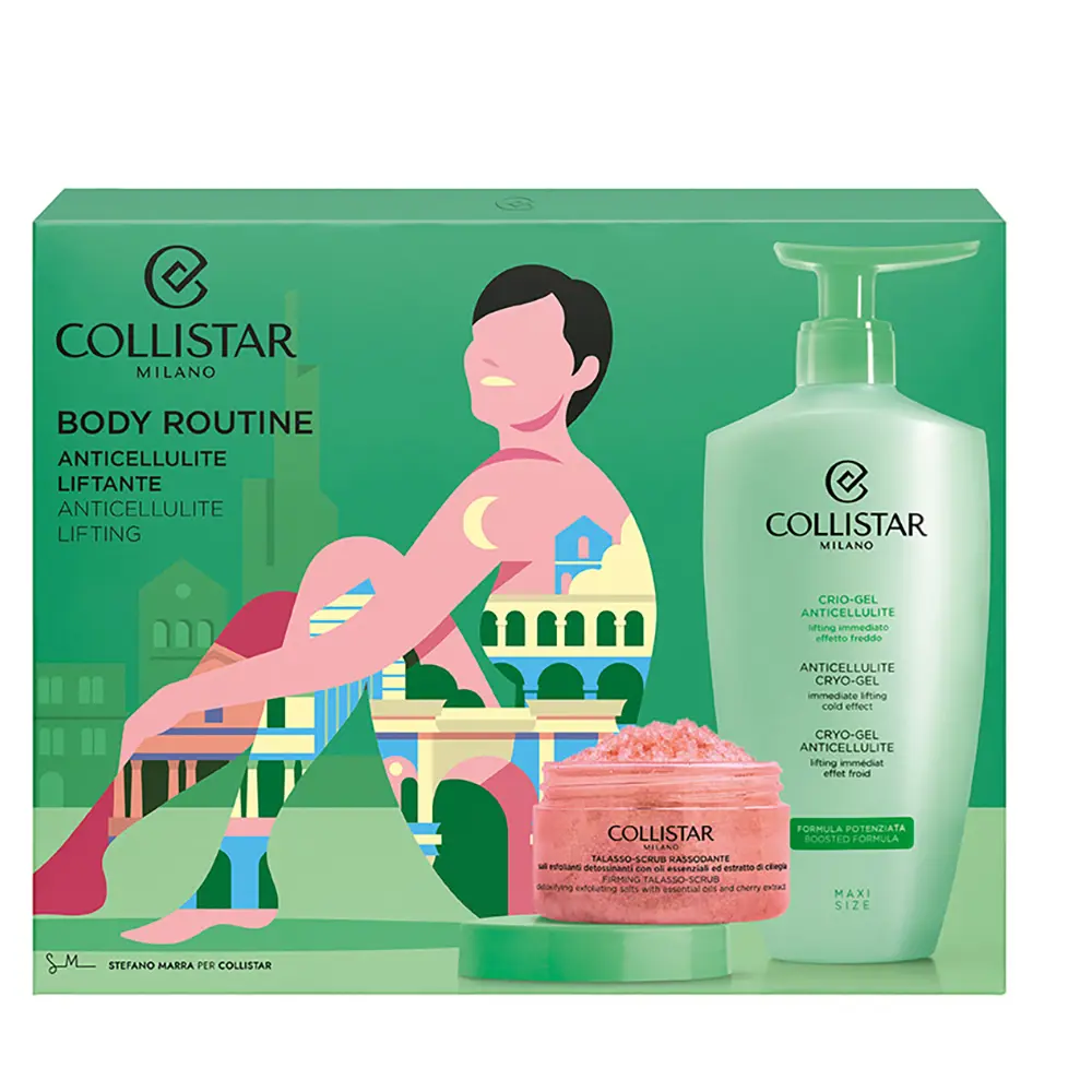 Collistar ANTICELLULITE CRYO-GEL τζελ κατά της κυτταρίτιδας 400 ml + Collistar Special Perfect Body Firming Talasso-Scrub συσφικτική απολέπιση σώματος 150 γρ + Collistar Bag τσάντα καλλυντικών 1 τμχ