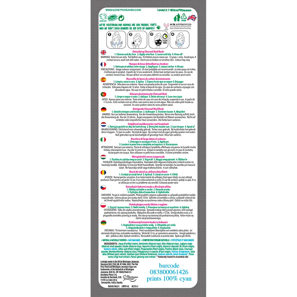 7TH HEAVEN FAB FACE FOOD CHARCOAL detoxifying charcoal mud mask 10g