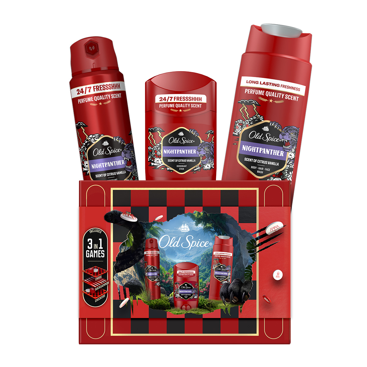 OLD SPICE NIGHTPANTHER CASE 3 pcs deo stick 50 ml + gel-shampoo 250 ml + deo vapo 150 ml