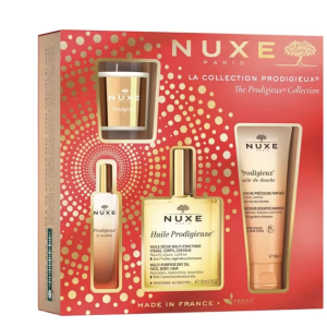 Το NUXE Huile Prodigieuse Set είναι ένα ολοκληρωμένο, πολυτελές πακέτο τεσσάρων προϊόντων που σας επιτρέπει να απολαύσετε το εμβληματικό άρωμα Huile Prodigieuse σε κάθε πτυχή της καθημερινής ρουτίνας περιποίησης. Το σετ περιλαμβάνει το Parfum Spray (30ml), το Ξηρό Λάδι (100ml), το Αφρόλουτρο (100ml) και ένα Αρωματικό Κερί (60g), προσφέροντας πολυτελή περιποίηση σώματος και αρωματοθεραπεία σε ένα μοναδικό σύνολο. Είναι το ιδανικό δώρο για όσους αναζητούν την αντιγηραντική φροντίδα και την αισθησιακή υπογραφή της Nuxe.