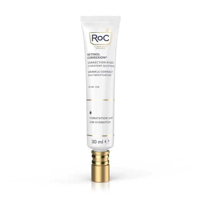 Το ROC Retinol Correxion Wrinkle Correct Daily Moisturizer SPF 20 (30 ml) είναι μια αντιγηραντική ενυδατική κρέμα για καθημερινή χρήση, σχεδιασμένη για να μειώνει την εμφάνιση των ρυτίδων και να βελτιώνει την υφή του δέρματος. Περιέχει ρετινόλη (γνωστή για τις αντιγηραντικές της ιδιότητες) και παρέχει ταυτόχρονα προστασία από τις βλαβερές ακτίνες του ήλιου με SPF 20. Η σύνθεσή της ενυδατώνει το δέρμα, αφήνοντάς το απαλό και φωτεινό, ενώ μειώνει τα σημάδια της γήρανσης. Ιδανικό για κανονικές και μικτές επιδερμίδες.