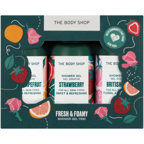 The Body Shop G1 Shower Gel Trio Set Pink Grapefruit Shower Gel 60ml/Strawberry Shower Gel 60ml/British Rose Shower Gel 60ml set x 180 ml