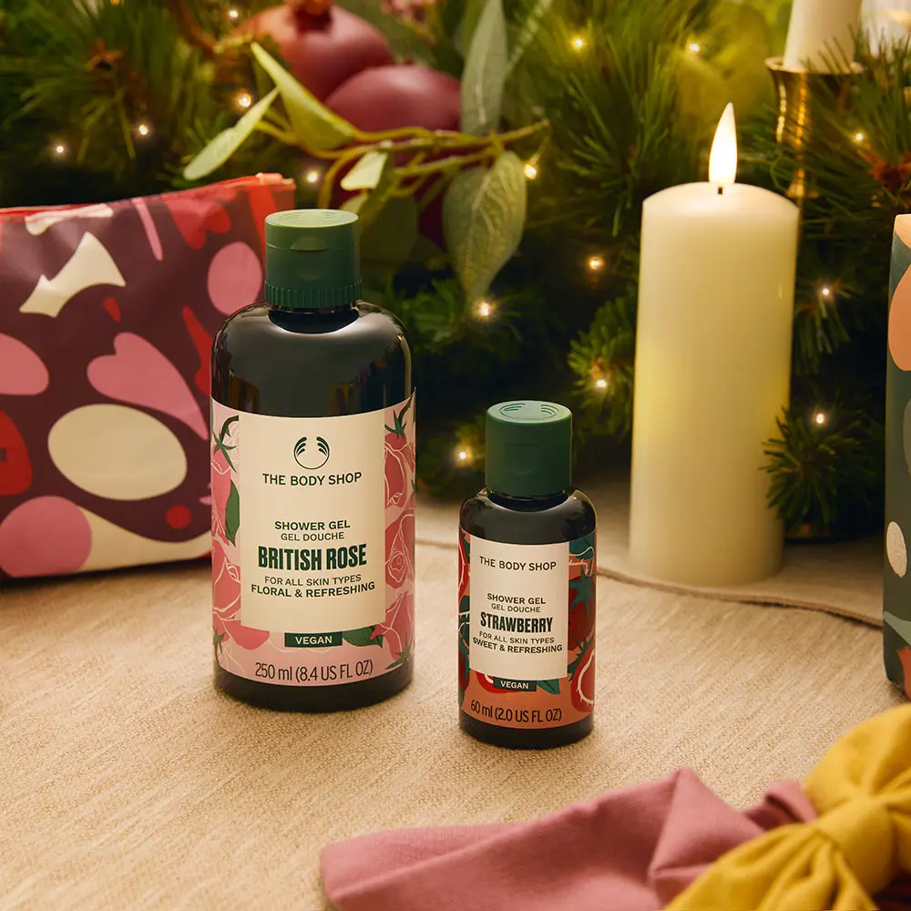 THE BODY SHOP MINI STRAWBERRY SET 4 pcs Body butter 50ml + hand balm 30ml + shower gel 60ml + toiletry bag
