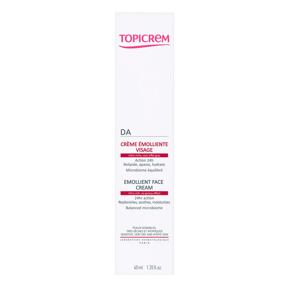 Το TOPICREM DA facial emollient cream 40 ml είναι μια ανακουφιστική κρέμα που σχεδιάστηκε ειδικά για τη θεραπεία του δέρματος που πάσχει από δερματίτιδα (atopic dermatitis). Η σύνθεσή της βοηθά στην ενυδάτωση και την επανόρθωση του δέρματος, ενώ παράλληλα βοηθά στην μείωση της ερεθισμένης, ξηρής και τραχειάς επιδερμίδας.