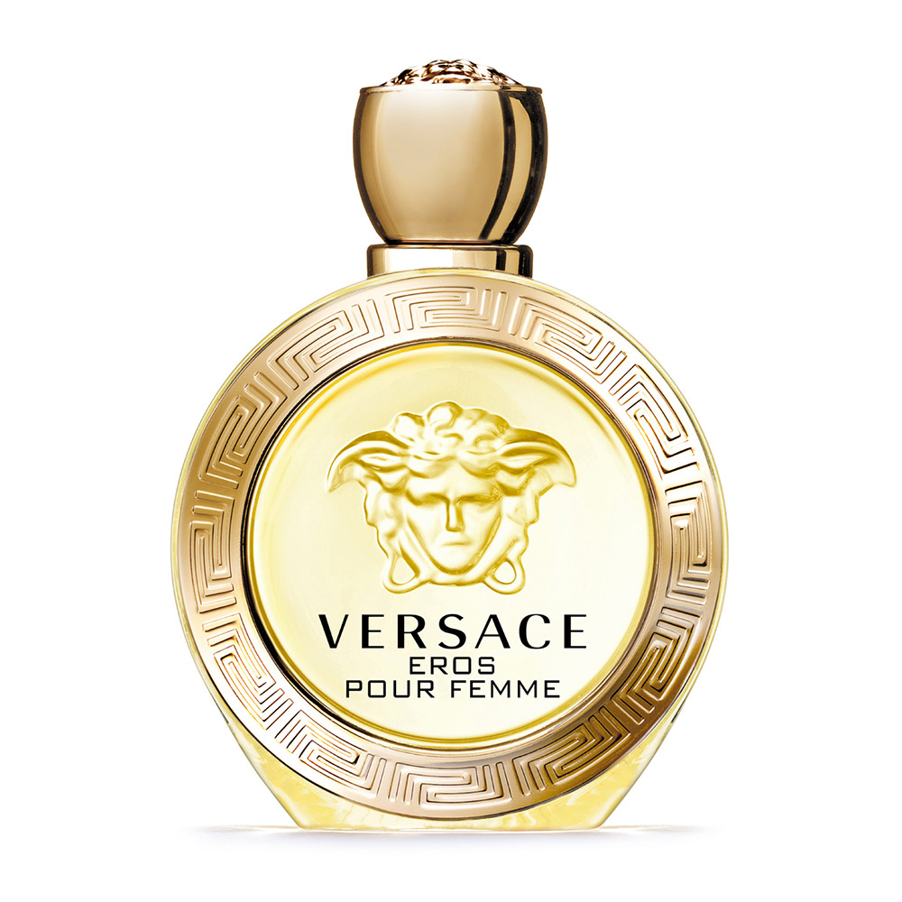Το design του Eros Pour Femme είναι ένα από τα πιο εμβληματικά του οίκου. Ο στρογγυλός αμφορέας με το ανάγλυφο κεφάλι της Μέδουσας (Medusa) στο κέντρο και τον ελληνικό μαίανδρο περιμετρικά, δηλώνει την αριστοκρατική καταγωγή του αρώματος. Το χρυσό χρώμα συμβολίζει τον ήλιο και την πολυτέλεια, κάνοντάς το ένα πραγματικό κόσμημα για τη συλλογή σας.