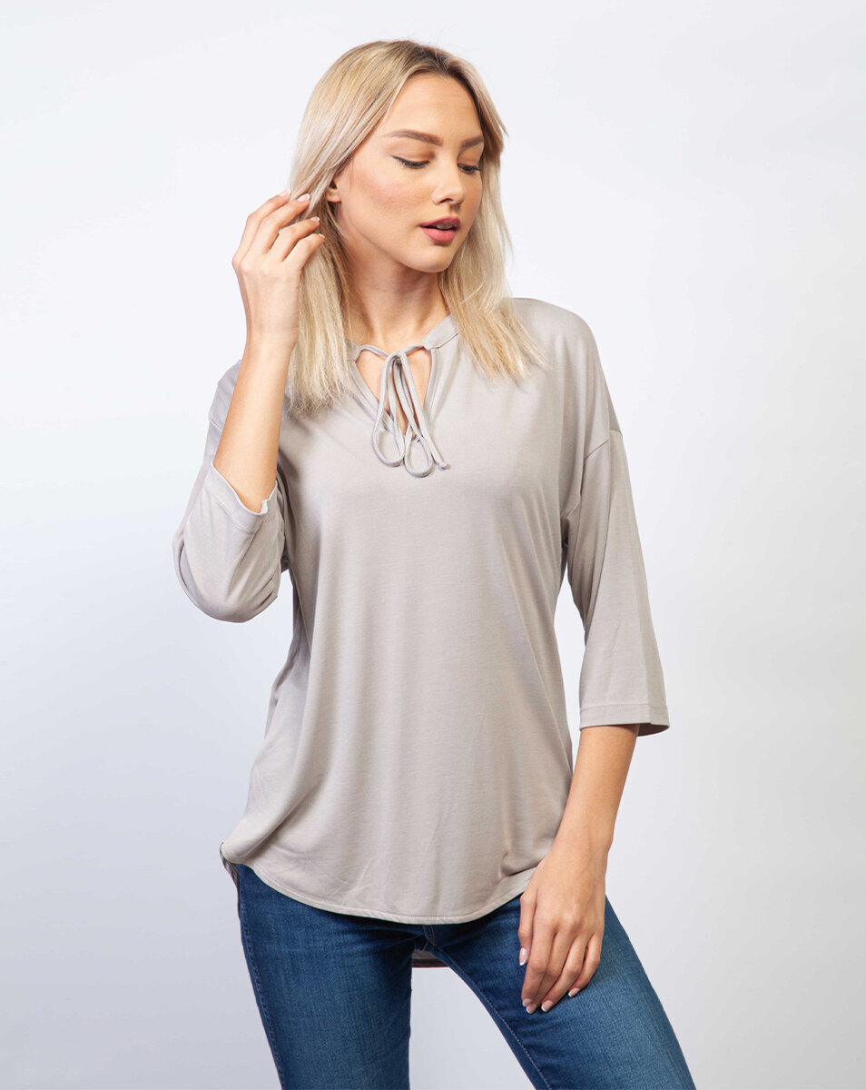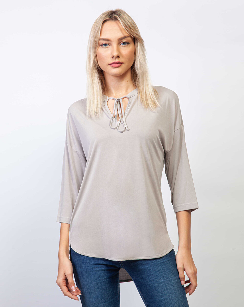 Μπλούζα με δέσιμο στο λαιμό και μανίκι 3/4